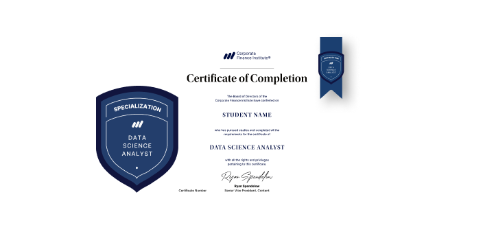 Upon completing your data science analyst certificate program, you'll receive a shareable blockchain digital certificate in data science. You can also order a physical certificate to be mailed to your door.