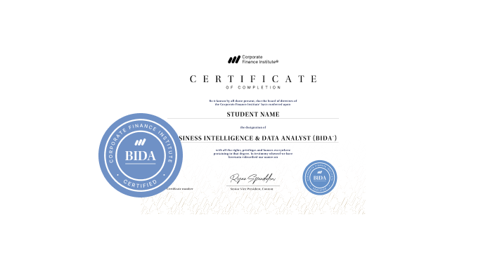 Looking to become a certified business intelligence professional? CFI’s Business Intelligence & Data Analyst (BIDA®) Certification Program will teach you the most important skills required to kickstart or advance your data analysis career. Learn how to use the most popular business intelligence tools and programming languages to explore, understand, and master data science.