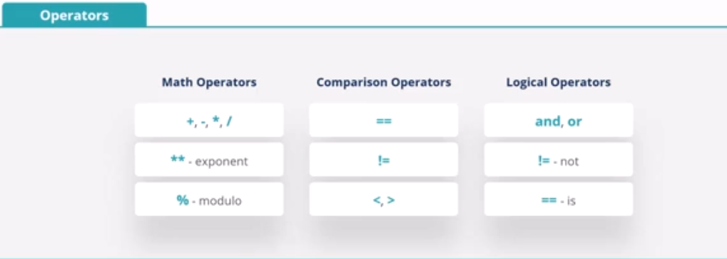 Now it’s time to build logic into our code. We’ll start with the standard operators for math, comparison, and logic.