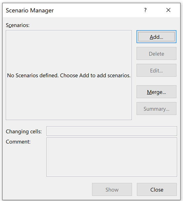 Click the Add button to create the first scenario.